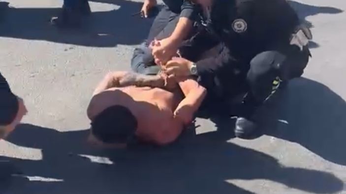 Alkollü olduğunun anlaşılması üzerine saldırgan tavırlar sergileyen ve polise direnerek çevresine zarar vermeye başlayan M.K., gözaltına alındı.