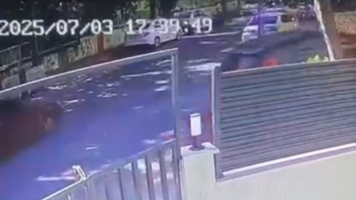 Yaşanan kaza anı ise güvenlik kamerasınca kaydedildi.