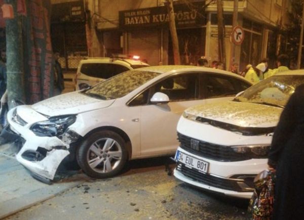 Bayrampaşa'da iki otomobil cadde üzerinde çarpıştı. Çarpışmanın etkisiyle araçlardan biri yol kenarındaki kıraathaneye daldı. 6 kişinin yaralandığı kaza güvenlik kameralarına yansıdı.
