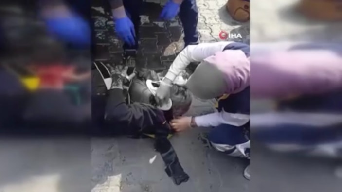 Ağır yaralanan sürücü hastaneye kaldırılırken, yaşanan feci kaza güvenlik kamerasına saniye saniye yansıdı.