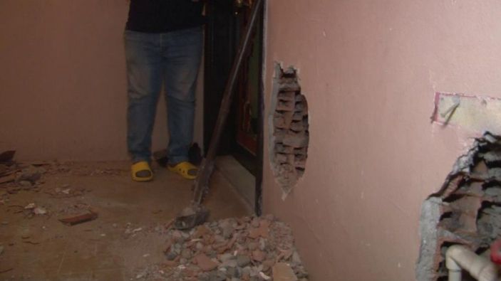 Bugün ise ev sahibi Murat Ç., kiracısı Muhammet Güner işte olduğu sırada elinde balyoz ile kapıya gelerek evin kapısını ve duvarının bir kısmını kırdı.