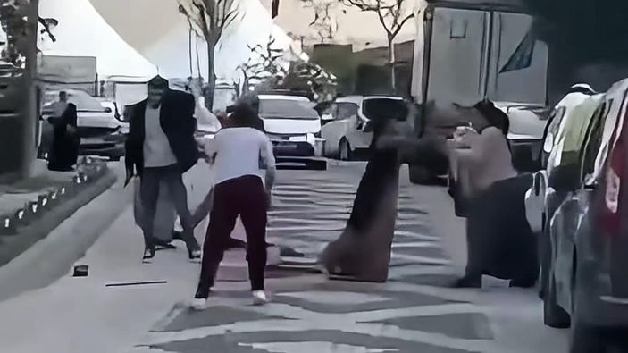 Kavga, çevredekilerin cep telefonu kameralarına yansıdı.