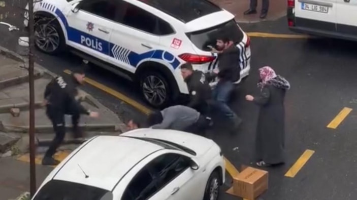 POLİSİN YANINDA BİRBİRLERİNE SALDIRDILAR