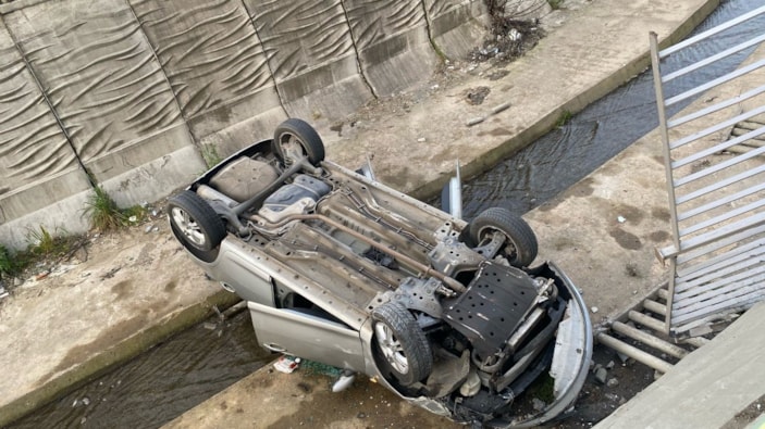İstanbul Pendik'te bir otomobil, hızlı şekilde giderken sürücüsünün virajı alamaması sonucu dereye uçtu.