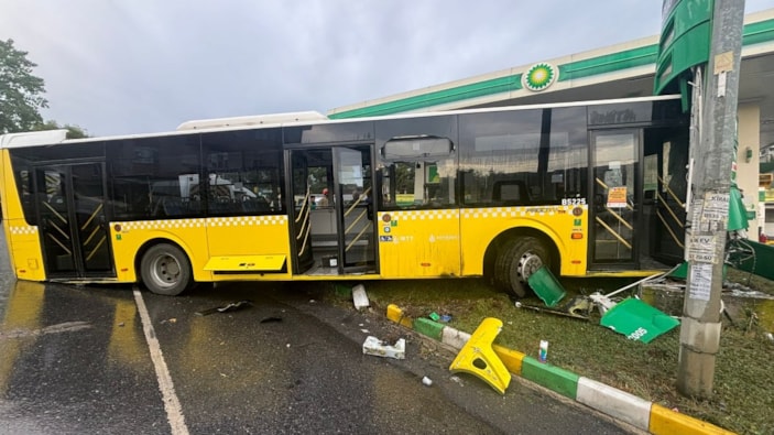 İstanbul'da kontrolden çıkan İETT otobüsü akaryakıt istasyonuna daldı