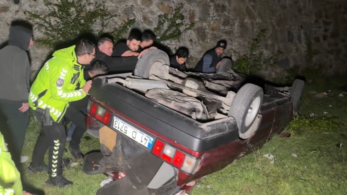 Otomobil hurdaya dönerken, içinde bulunan iki kişi kendi imkanlarıyla araçtan çıkıp olay yerinden kaçtı.
