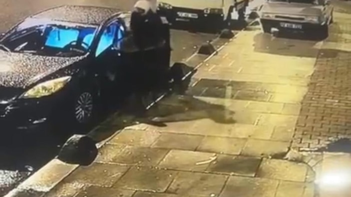 Ardından kendi arabasıymış gibi rahat tavırlarla aracın başına gelen hırsız, yanındaki anahtarla kapıyı açıp aracı çalıştırdı.