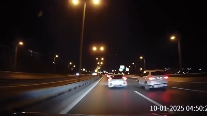 Otoyolda seyir halinde olan bir sürücü, iki aracın arasından makas atarak geçmek istedi.