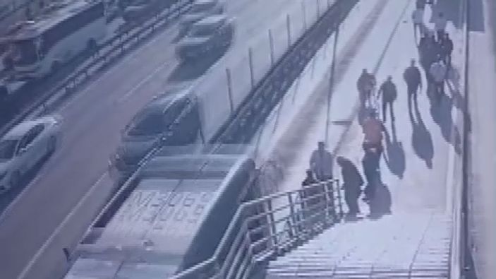 Görüntülerde, tekerlekli sandalyesiyle metrobüs yoluna düşen Hüseyin C.'ye metrobüsün çarptığı anlar yer aldı.