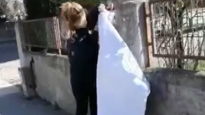 Çekmeköy’de bir kadın Miraç Kandili nedeniyle asılan kutlama pankartını yerinden söküp evine götürmek istedi. Yaşanan o anlar cep telefonu kamerasına yansıdı.