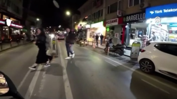 Motosikletini yayaların üstüne sürerek kazaya davetiye çıkaran sürücü, sosyal medyada paylaşılan görüntülerin ardından harekete geçen polis ekipleri tarafından yakalanırken 10 bin 662 TL ceza uygulandı.