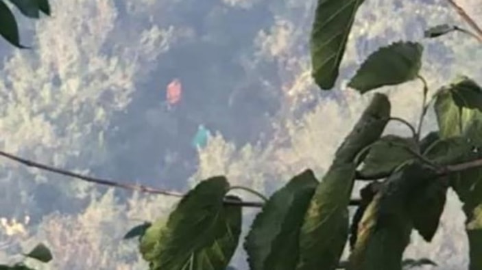 Öte yandan, yangını çıkardıkları iddia edilen 2 kişinin alevlerin arasından ellerinde bidonla çıktığı anlar cep telefonu kamerasına yansıdı.