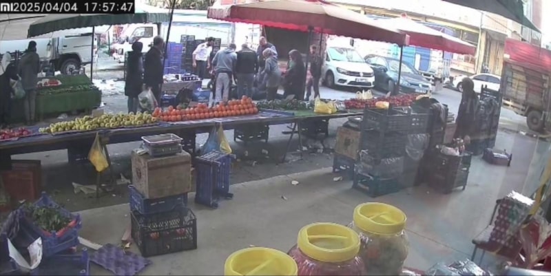 Pendik’te kurulan semt pazarında epilepsi nöbeti geçiren bir vatandaş yere yığıldı. Olay anı, çevredeki bir iş yerinin güvenlik kamerasına yansıdı.