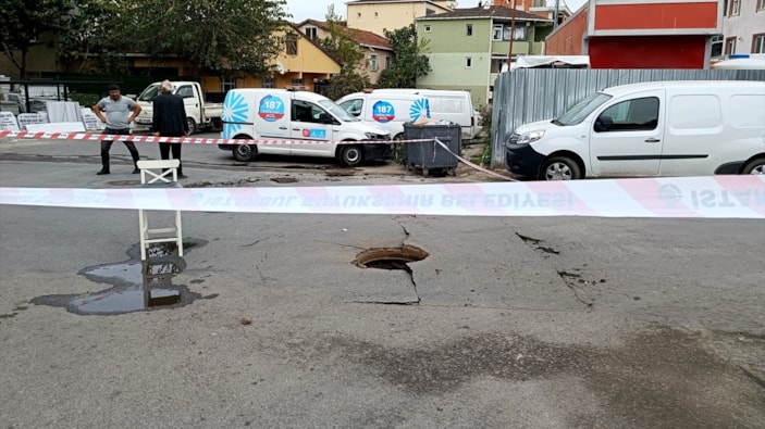 İstanbul'da rögar kapağı fırladı, yolda göçük oluştu