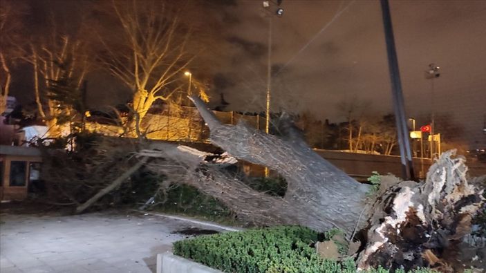 İstanbul'da rüzgar asırlık çınarı devirdi VİDEO