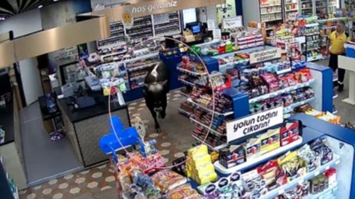 İstanbul'da sahibinden kaçan dana markete daldı