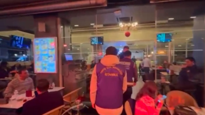Şişli'de denetimlerde iş yerlerinin evrakları ve içki şişelerinin bandrolleri incelenirken, mekanlarda eğlenen kişilerin de kimlikleri kontrol edildi.