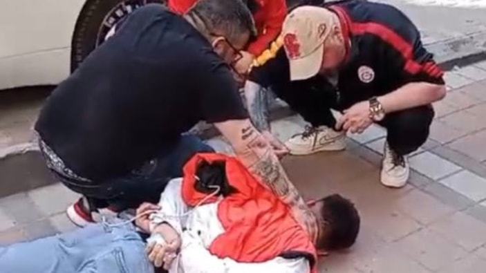 Yüzüstü yere yatırılan şahsın boynunu bir vatandaş tutarken, elleri de kaçmasın diye de bağladı. Ardından da polis ekiplerine ihbarda bulunuldu.