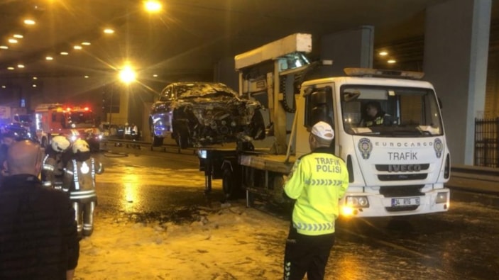 Kontrol altına alınan yangın sonrası kullanılamaz hale gelen araç, çekici yardımıyla emniyet otoparkına götürüldü. Yaşananlar ise kameralara yansıdı.