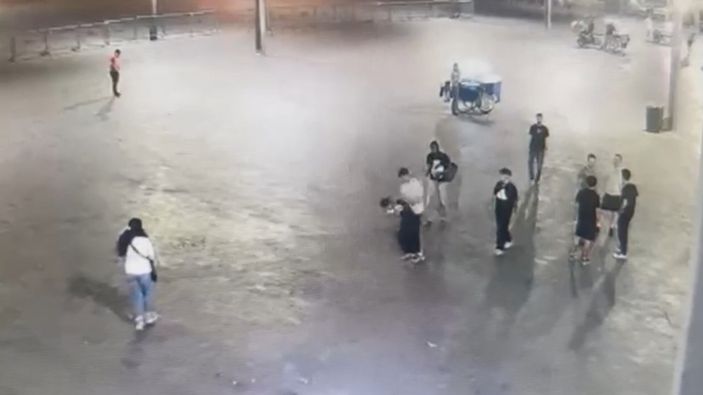 Kadın ardından bir arkadaş grubunun arasına girerek içlerinden bir kişi ile meydandan uzaklaştı.