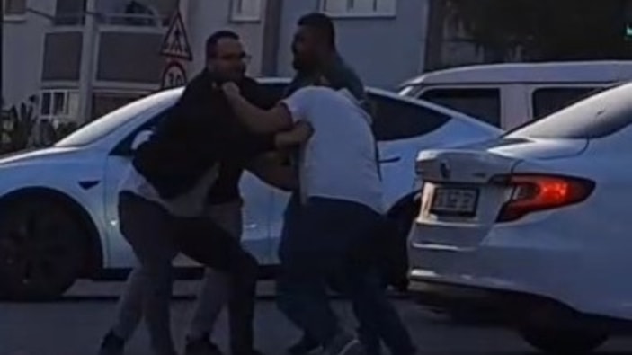 Görüntülerde iki kişinin birbirine saldırdığı ve birinin tişörtünün yırtılarak üzerinden çıktığı görüldü.