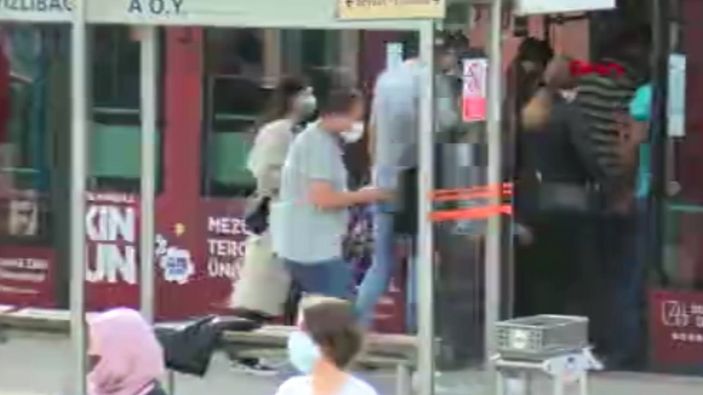 İstanbul'da tam kapanmaya rağmen tramvay durakları doldu VİDEO