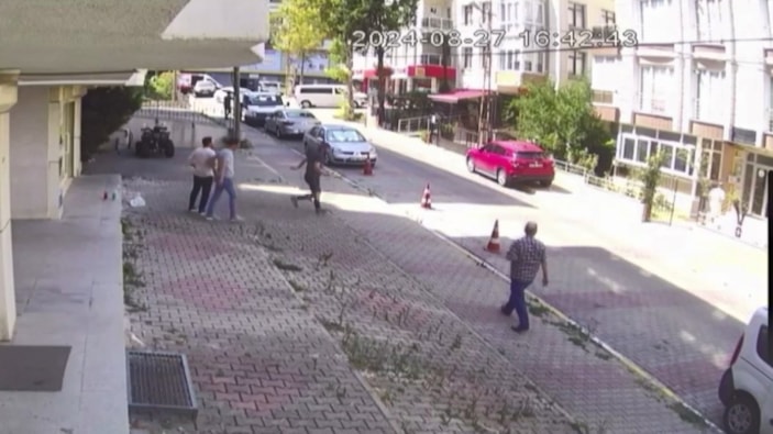 Şüphelinin gözaltına alındığı anlar bir güvenlik kamerasına da yansıdı.