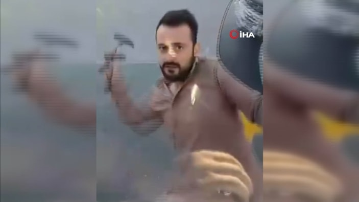 Tartıştığı şoförün elinde çekiçle indiğini gören diğer sürücünün, "Gel hadi vur, aşağı inip erkeklik yapıyor." diye bağırması üzerine daha da öfkelenen şoför, elindeki çekiçle tırın camlarını kırdı.
