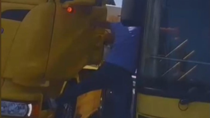 Tartışma kısa sürede büyürken, tırda bulunan diğer kişi araçtan inerek otobüse bindi.