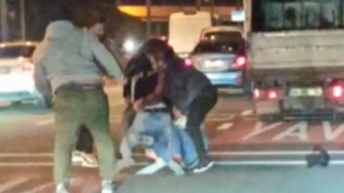 İstanbul'da trafiği tehlikeye düşüren kamyonet sürücüsüne dayak ViDEO