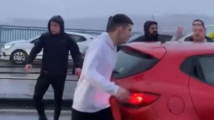 Unkapanı Köprüsü'nde yol verme nedeniyle iki sürücü arasında çıkan tartışma, büyüyerek kavgaya döndü.