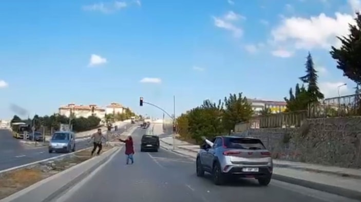 Arnavutköy ilçesinde iki sürücü arasında çıkan tartışma taşlı kavgaya dönüştü. Aracından inen sürücünün diğer otomobile taş fırlattığı anlar araç içi kamerasına yansıdı.