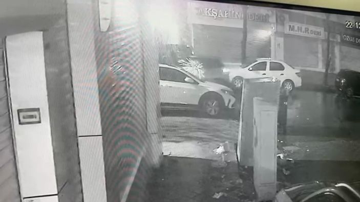 Diğer yandan saldırı anı güvenlik kamerasına yansıdı. Görüntülerde araçla sokağa gelen şüphelilerin silahla park halindeki otomobile ateş açıp daha sonra kaçtıkları anlar görülüyor.