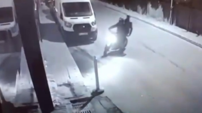 İstanbul Sarıyer'de bulunan villaların olduğu sitenin önüne motosikletle gelen kasklı 2 saldırgan, bir süre çevrede dolaştı.