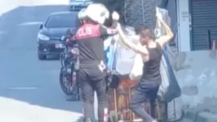 İstanbul'da yokuşta zorlanan kağıt toplayıcısına polis yardım etti