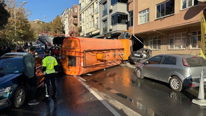 Bayrampaşa ilçesinde seyreden İBB'ye ait yol bakım aracının sürücüsü, Kocatepe Mahallesi civarında direksiyon hakimiyetini kaybetti.