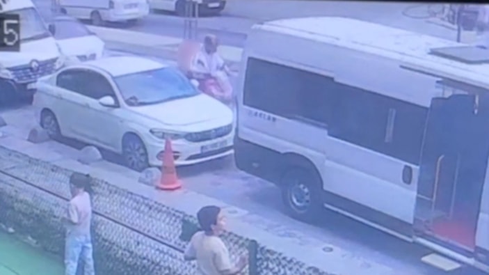 Arnavutköy'de uzun süre trafikte inatlaşan taraflardan otomobil sürücüsü, sinirlenerek aracını motosikletlinin üzerine sürdü. Park halindeki servis aracı ile otomobil arasında sıkışan motosiklet sürücüsü yaralandı. Kaza anı güvenlik kamerasına yansıdı.