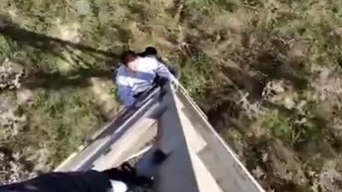 Facianın eşiğinden dönen gençler, direğe tırmanma anlarını görüntüledi.