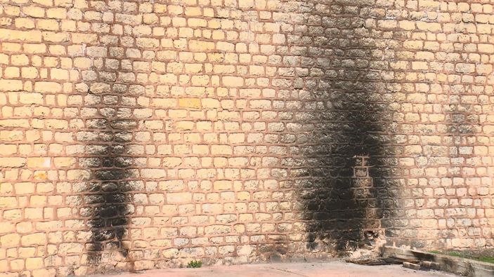 Çevresinde yakılmış atıkların da bulunduğu dikkat çeken 1600 yıllık surların, sahile paralel kısımlarında duman isleri oluştuğu dikkat çekti.