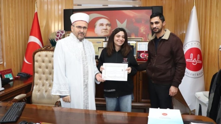 İl Müftüsü Üstündağ, Müslüman olan Eda'yı tebrik ederek "ihtida belgesi" ile birlikte, Kur'an-ı Kerim ve ilmihal hediye etti.