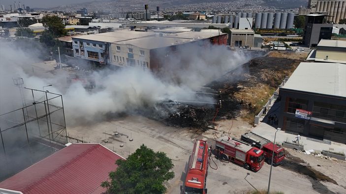 Bornova ilçesindeki Egemenlik Mahallesi'ndeki sitede ayakkabı üretimi yapan işletmelerin bıraktığı sanayi atıklarında yangın çıktı.