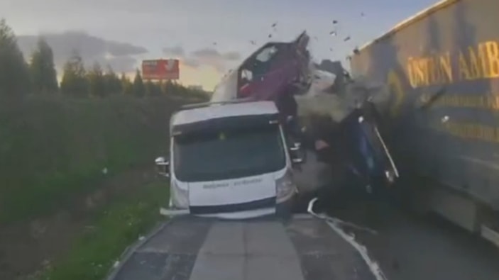 Bu sırada aynı istikamette seyreden Muhammed Soylu (25) yönetimindeki pikap, önünde ilerleyen kamyon nedeniyle emniyet şeridine geçerek 2 araca çarptı.