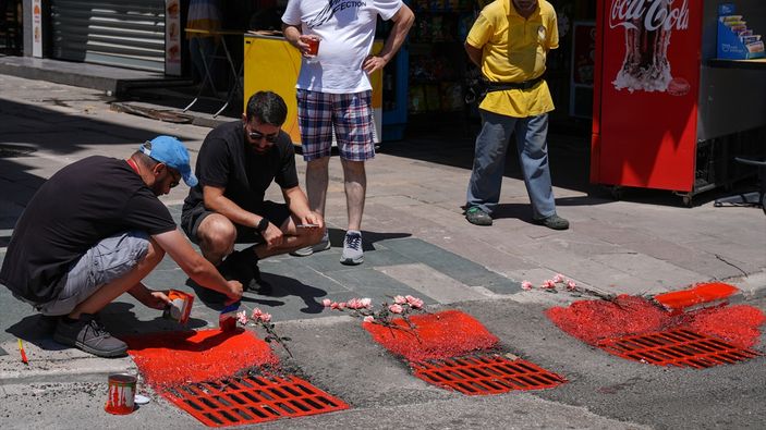 Öte yandan, sivil toplum kuruluşları da olayın yaşandığı sokakta eylem yaptı. Enver Dündar Başer Sokak'ta toplanan bir grup, sokaktaki mazgalları kırmızıya boyadı.