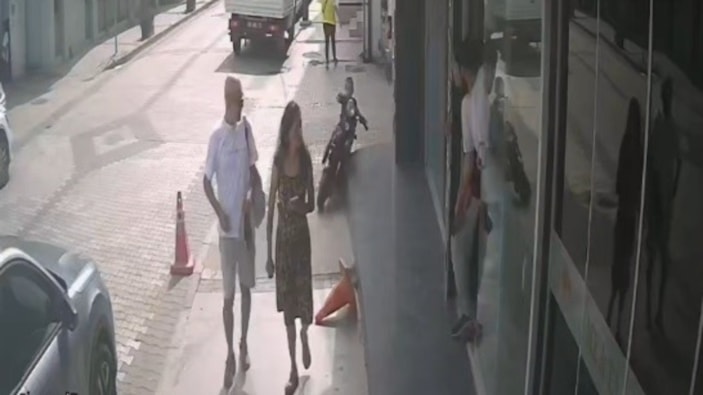 O anlar ise sokaktaki bir iş yerinin güvenlik kamerası tarafından görüntülendi.