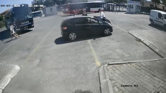 İzmir'in Çeşme terminalinde meydana gelen olayda, bir sürücü otomobiliyle terminalinden çıkmak için hareket etti.