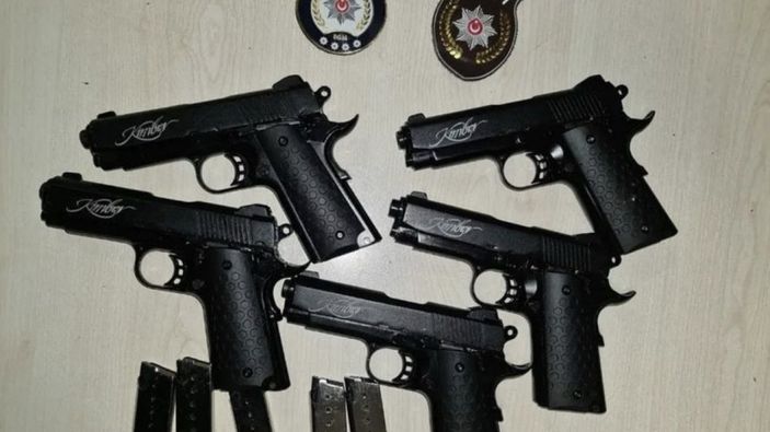Kısa sürede yakalanan ve isminin R.G. olduğu belirlenen şüphelinin üzerinde yapılan aramada, kurusıkıdan bozma 5 adet tabanca ele geçirildi.