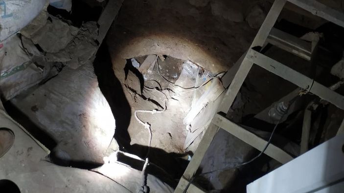 Camiye ulaşmak ve altında define aramak için evin bir odasından tünel kazıldığını tespit eden ekipler, tünelin caminin altına doğru ilerlediğini belirledi.
