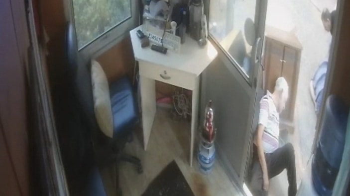 Görüntülerde, sandalyede oturan Zeki Aldemir'in fenalaştığı, o esnada orada bulunan ve arkadaşına yardım eden Ercan Kiremitçiler'in bir anda yere yığıldığı anlar yer aldı.