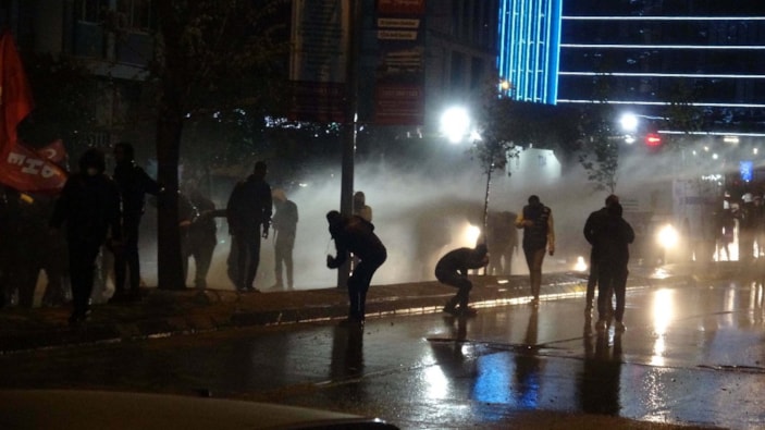 İzmir sokakları, izinsiz eylem düzenleyen göstericiler nedeniyle adeta savaş alanına döndü.
