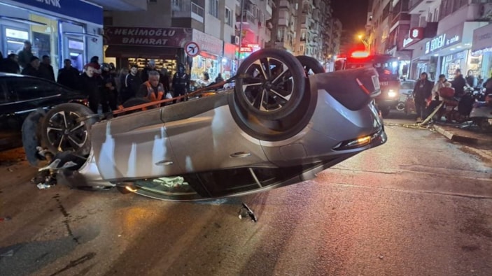 İzmir'in Karabağlar ilçesi Vatan Mahallesi'nde Recep Baysener (31) idaresindeki otomobil, sürücüsünün direksiyon hakimiyetini yitirmesi sonucu takla attı.